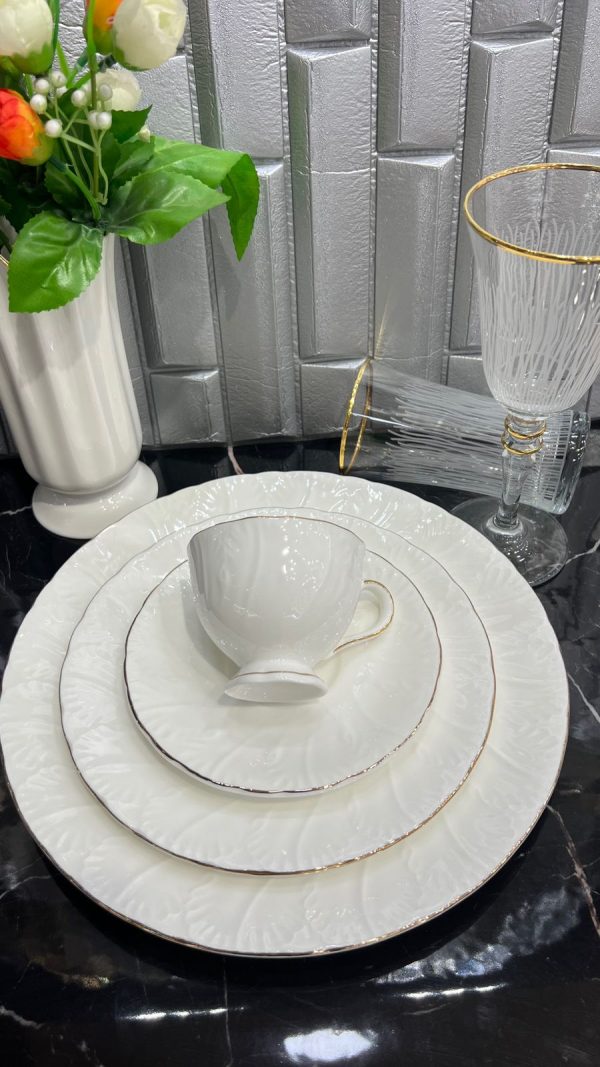 12 aş boşqab, 12 orta boşqab, 12 dərin boşqab, 12 desert boşqabı, 12 kasa-qaşıq, 12 fincan və nəlbəki,